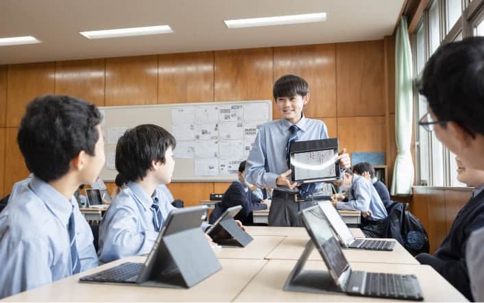 全員が幅広い学力と教養を身につけ、文系・理系問わず、社会で生き抜くための力の育成をめざし、将来に向けた学びと成長を実感できる6年間を過ごします。